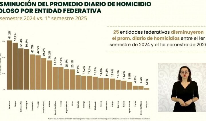 -Reduce estado 50.4 % delitos de ese tipo en el primer semestre de 2025....