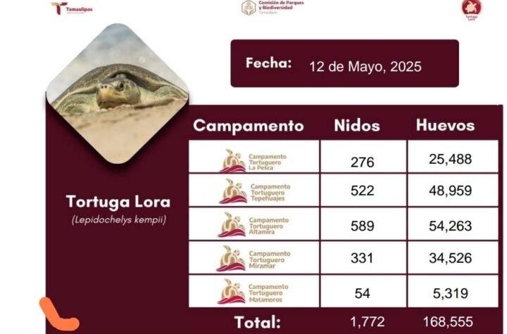 Incrementa Tamaulipas resguardo de huevos de tortuga lora en un 20% mayo 13, 2025 MEGA RED LATINA A la fecha, se cuentan con 1 mil 772 nidos y más de 168...