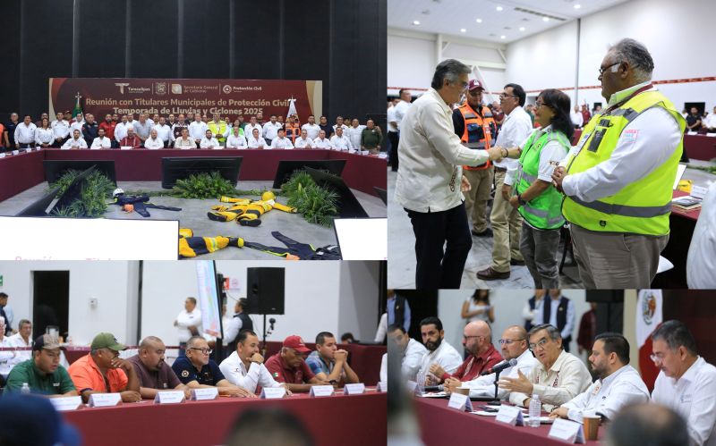 Ciudad Victoria, Tamaulipas. – El gobernador Américo Villarreal Anaya convocó a las y los 43 titulares municipales de Protección Civil a fortalecer la coordinación entre los tres niveles de gobierno, trabajar en la previsión y mantener informada a la población ante cualquier contingencia, a fin de minimizar los riesgos y afectaciones ante las lluvias que se intensificarán a partir de este jueves y durante la temporada de ciclones 2025.