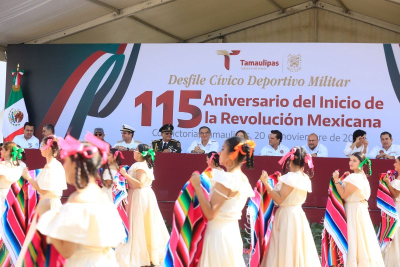 En un marco lleno de folclor, música tradicional mexicana, majestuosos vestuarios y mucho colorido, con representaciones de los caudillos revolucionarios, bailables y tablas gimnásticas, también desfilaron a lo largo del bulevar Tamaulipas 255 integrantes del Ejército Mexicano, Fuerza Aérea y Guardia Nacional, y 724 elementos de la Guardia Estatal, haciendo un total de más de 3,500 participantes.