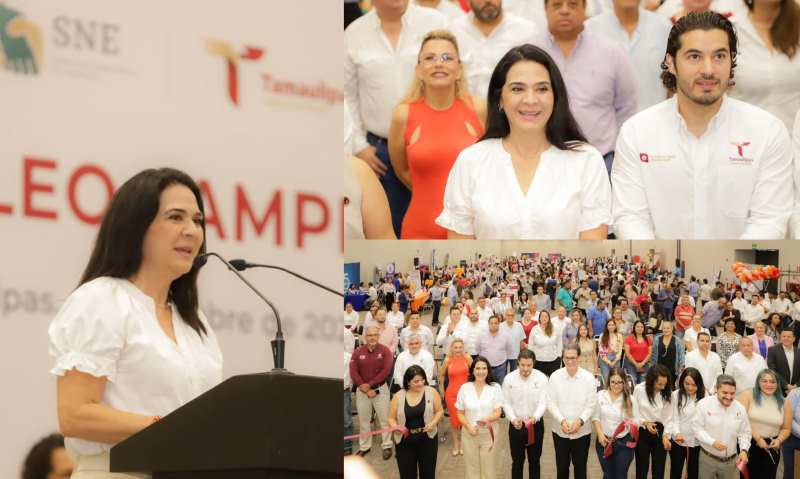 Ahí, la Presidenta municipal, acompañada del Secretario de Trabajo y Previsión Social en el Estado, Luis Gerardo Illoldi Reyes; así como del alcalde de Ciudad Madero, Erasmo González Robledo y las Diputadas locales, Úrsula Salazar Mojica y Cynthia Jaime Castillo, destacó que generar empleos contribuye a construir escenarios de certidumbre y prosperidad.
