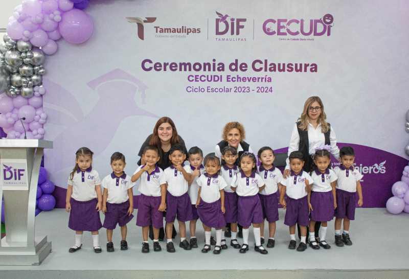 Ciudad Victoria, Tamaulipas. Al término del reciente ciclo escolar y de acuerdo con el calendario oficial de la Secretaría de Educación, 2 mil 924 alumnas y alumnos inscritos en los Centros de Cuidado Diario Infantil (CECUDI) y en los Centros de Atención Infantil Comunitarios (CAIC) del Sistema DIF Tamaulipas que preside la doctora María de Villarreal, culminaron su instrucción preescolar.