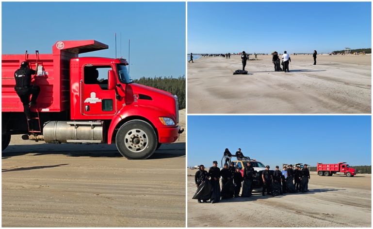 Altamira, Tamaulipas.- A unos días de celebrarse la Semana Santa, personal de la Guardia Estatal participó en ‘’Limpiazo Playa Tesoro’’, atendiendo la convocatoria del Gobierno Municipal de Altamira, en la cual, junto a autoridades del municipio, estado y federación, llevaron a cabo labores de limpieza y recolección de basura, residuos y sargazo.