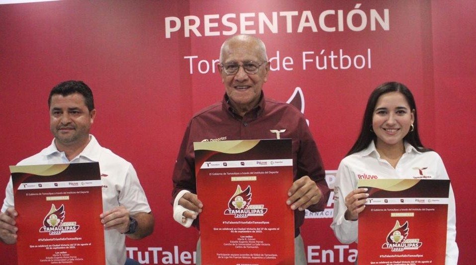 Ciudad Victoria, Tamaulipas.-  El Gobierno de Tamaulipas a través del Instituto del Deporte, realizó la presentación de la “Copa Tamaulipas Internacional 2023”, torneo de fútbol, que dará inicio el 27 de agosto al 2 de septiembre del presente año y tendrá como sede la capital tamaulipeca.