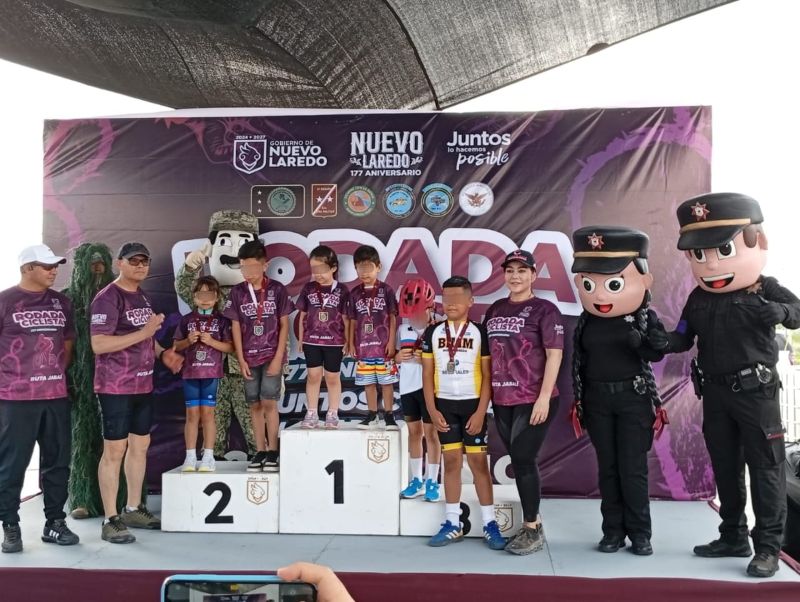 Nuevo Laredo, Tamaulipas.- Dentro de las acciones para reforzar la cercanía con la población del municipio de Nuevo Laredo, personal de la Guardia Estatal de Género participó en una rodada ciclista celebrada en esta ciudad fronteriza.