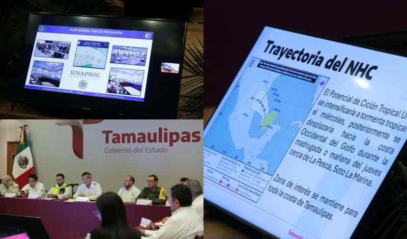 -Declaró en sesión permanente al Consejo Estatal de Protección Civil; el fenómeno entraría cerca de Soto la Marina, la noche del miércoles o madrugada del jueves.